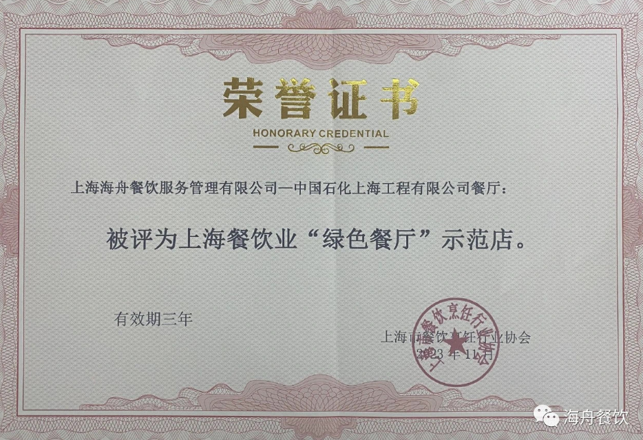 我司新增兩個“綠色餐廳”殊榮 | 動態(tài)新聞 | 行業(yè)洞見 | 上海海舟餐飲服務(wù)管理有限公司
