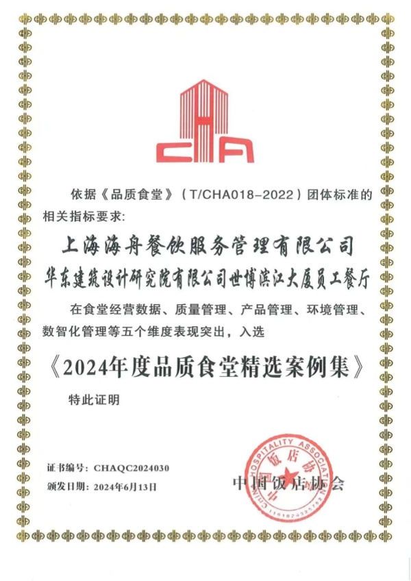 華東設(shè)計院濱江餐廳在多個關(guān)鍵維度上獲得了團(tuán)餐行業(yè)內(nèi)的高度認(rèn)可,榮獲“2024年度品質(zhì)食堂”稱號并入選“2024年度品質(zhì)食堂精選案例集”